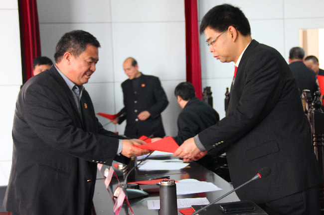 会上,杨晓副院长通报了2013年度各部门绩效考评结果,政治部主任靳洪来宣读了2013年先进集体和个人的表彰决定,全体党组成员为获奖庭科室和个人颁发证书,纪检组长杜相明汇报了2013年全院党风廉政建设工作开展情况,并提出2014年党风廉政建设工作要求,党组成员和中层正副职向院长宋长青递交党风廉政建设目标责任书,权波副院长结合当前的形势对信访工作进行安排部署。