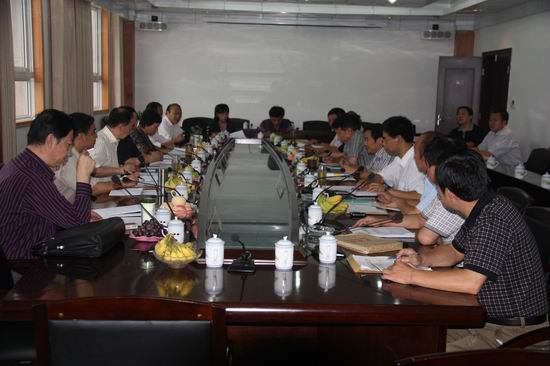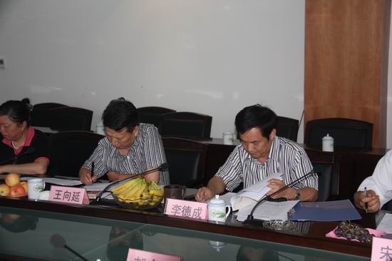 县委副书记李德成(右一)、县政法委常务副书记王向延同时向省、市法院领导汇报工作