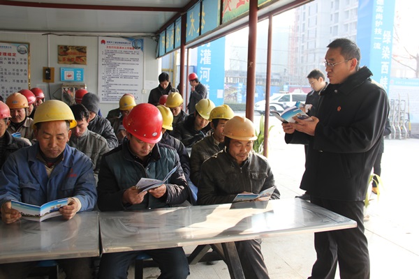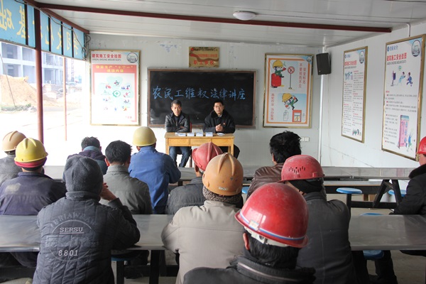 针对农民工普遍存在的文化水平偏低、法制意识淡薄等问题,2月4日,西峡县法院院长宋长青带领法官来到五里桥镇一处建筑工地,对三十多名农民工开展法律知识讲座,并向农民工发放由河南省高级人民法院编印的《农民工维权宝典》,进一步增强农民工的法制观念和自我保护意识,指导和帮助农民工快速依法讨薪维权。
