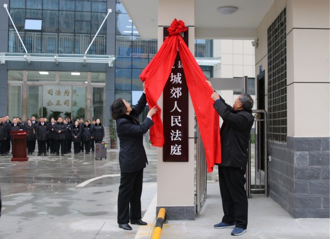 最后赵曙君同志和城郊法庭庭长曹正伟共同为新法庭揭牌。