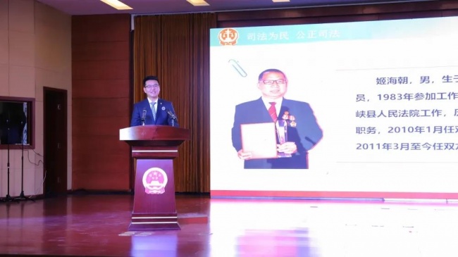 12月22日上午,由河南省高级人民法院、南阳市中级人民法院联合主办的“人民群众讲法官 温情司法解民忧”全媒体直播活动在邓州市成功举行,来自不同行业的五名群众代表分别讲述了五名人民法官的感人事迹,西峡法院双龙法庭庭长姬海朝事迹入选。