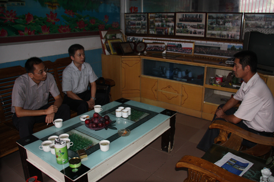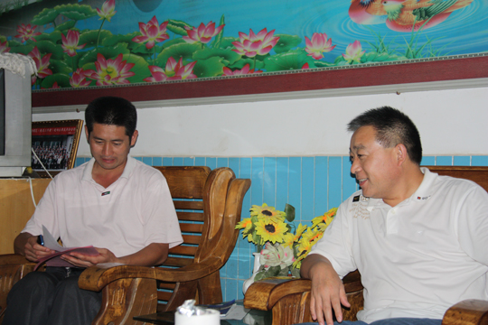 9月2日,河南省高院调研室副主任杨晓峰等一行到西峡县田关乡孙沟村走访、座谈,省人大代表村支书马景龙,听取代表对法院开展的“十项承诺”、队伍建设、廉洁执法、服务新农村建设等活动开展工作情况的意见和建议。图为省高院研究室副主任杨晓峰(左二)在认真听取省人大代表马景龙(右一)对法院所提出的意见和建议。