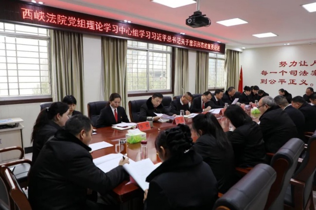 为深入学习贯彻习近平总书记关于意识形态工作的重要论述精神,扎实做好新时代意识形态工作,2月19日,西峡法院召开党组理论学习中心组(扩大)会议,专题学习习近平总书记关于意识形态工作的重要论述。党组书记、院长肖新征主持会议并讲话,全体班子成员及各支部书记参加会议。