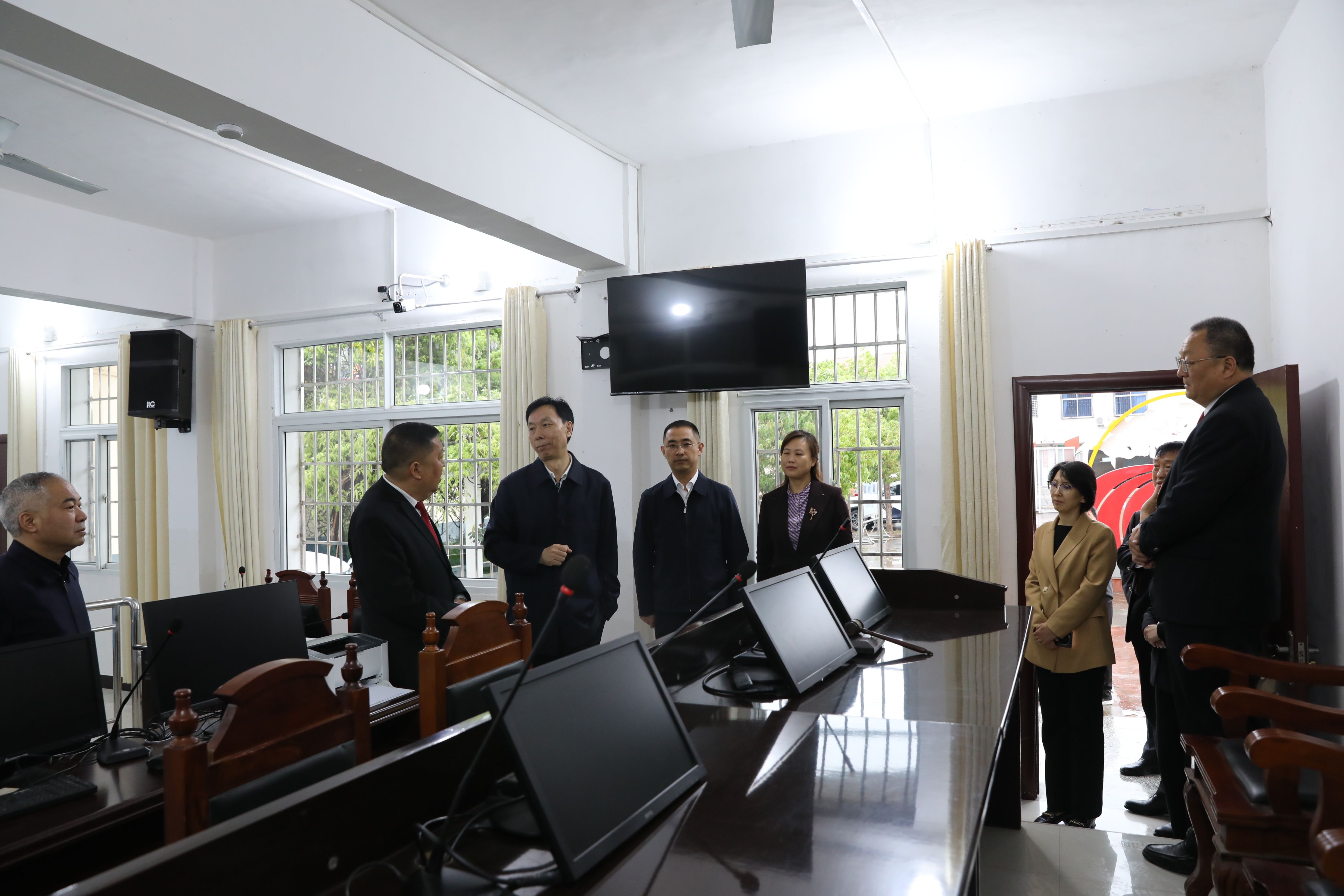 调研组一行实地察看了法庭办公场地,详细询问了法庭人员配置、管辖范围、案件类型、基础设施建设、参与基层社会治理等方面情况,全面了解了审判质效、特色品牌创建、信息化应用等工作开展情况,以及法庭当前遇到的困难和下一阶段的工作打算。同时,调研组围绕审判庭的升级改造、互联网法庭的科学使用等方面与法庭干警进行了深入探讨,并给予了针对性的指导意见和建议。